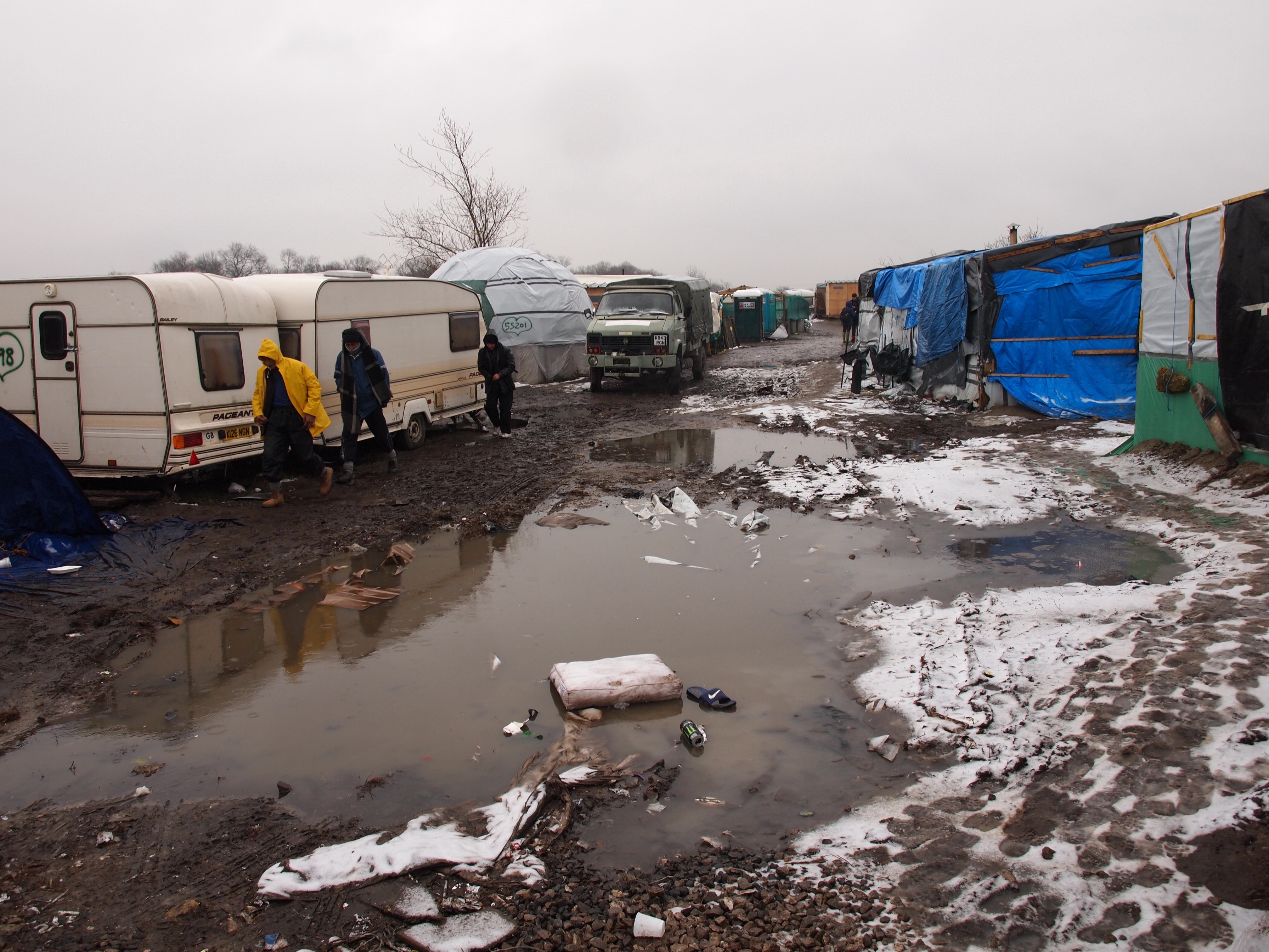 This morning I was up early to accompany Green Party leader Natalie Bennett and London Assembly member Jenny Jones as they visited a ‘bunch of migrants’ (© David Cameron) in the Calais refugee ‘camp’ known – seemingly with good reason – as the Jungle. (Natalie and Jenny were following-up on their previous visit, in November last year).