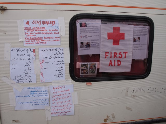 We had too-sweet tea with Mustafa in the make-shift ‘cafe’ he has painstakingly constructed during his eight months in the camp. Tomorrow, or the day after, or sometime soon at least, Mustafa’s ‘cafe’ (also his ‘home’) is set to be bulldozed along with the rest of the ‘cafes’, ‘shops’ and even ‘restaurants’ that fill his ‘street’. Mustafa will be left with nothing but a small bag of clothes and other possessions.
