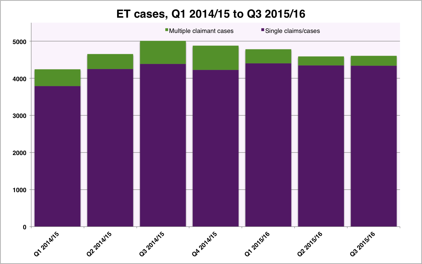 However, just in case you, dear reader, happen to be a member of that committee of MPs, here’s a chart showing how successful Acas early conciliation has been in cutting ET case numbers since its introduction in Quarter 1 of 2014/15 (that’s the column on the far left).