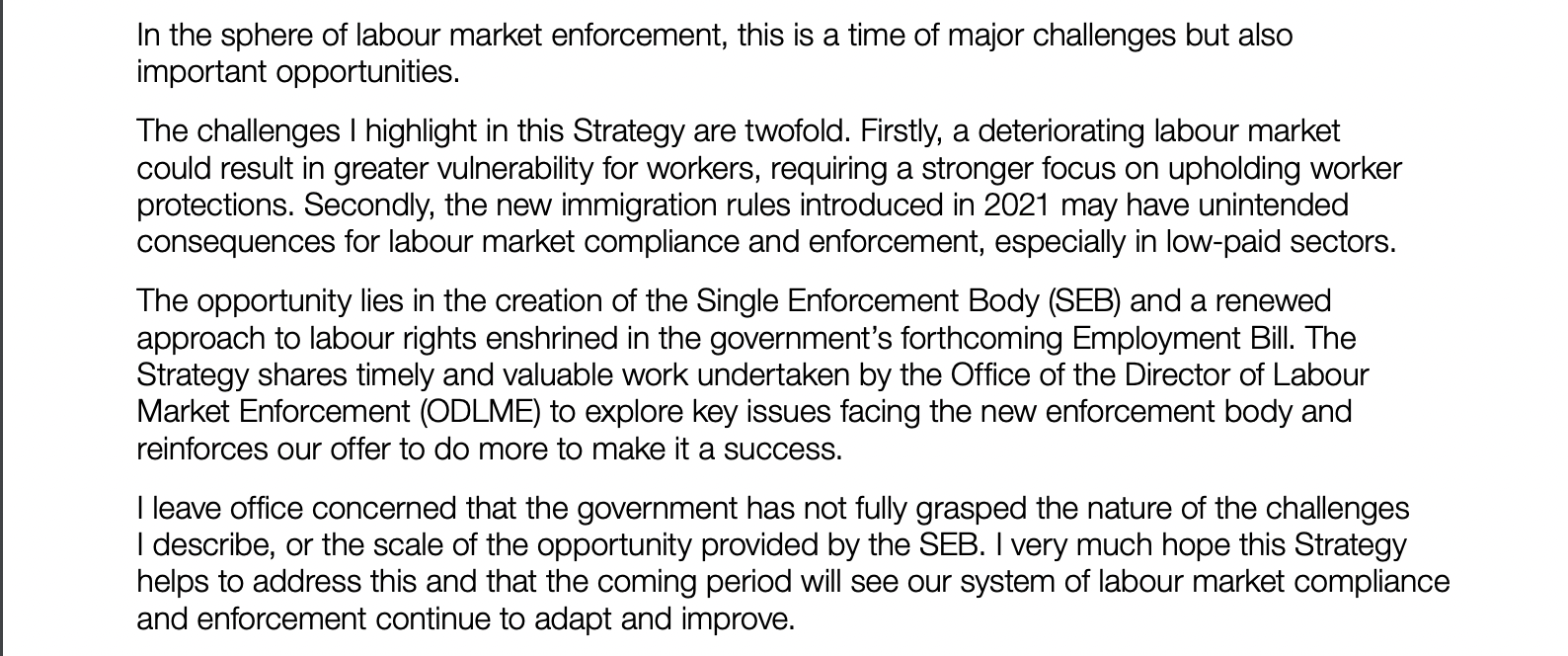 Worse still, in January 2021 a somewhat disgruntled Matthew Taylor – Interim Director of Labour Market Enforcement and a committed and persuasive advocate of a Single Enforcement Body since his July 2017 Taylor Review of Modern Working Practices – had come to the end of his contract, and had exited muttering under his breath that the Johnson-led Government has not “fully grasped the scale of the opportunity provided by the [single enforcement body]” (an opinion reported as early as February 2021, and confirmed earlier this month by the much delayed publication of Taylor’s Labour Market Enforcement Strategy 2021 to 2022).
