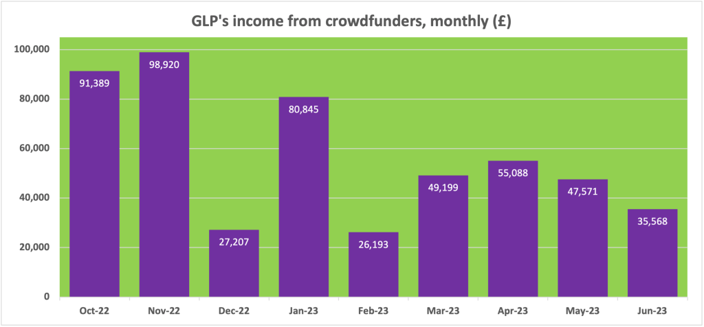 - GLP’s crowdfunded income in 2023/24 to date: £213,619