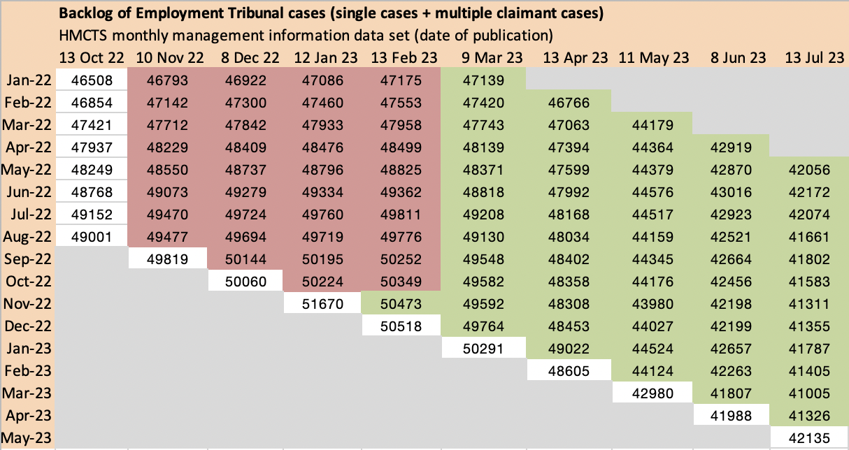 Previously on this blog, I have noted how, in March this year, HM Courts & Tribunal Service began to revise its previously published management information on the backlog of Employment Tribunal cases, and how this magical shrinkage of the ET backlog later accelerated. And the latest set of HMCTS management information, published yesterday, indicates that this downwards revision of previously published data continues.