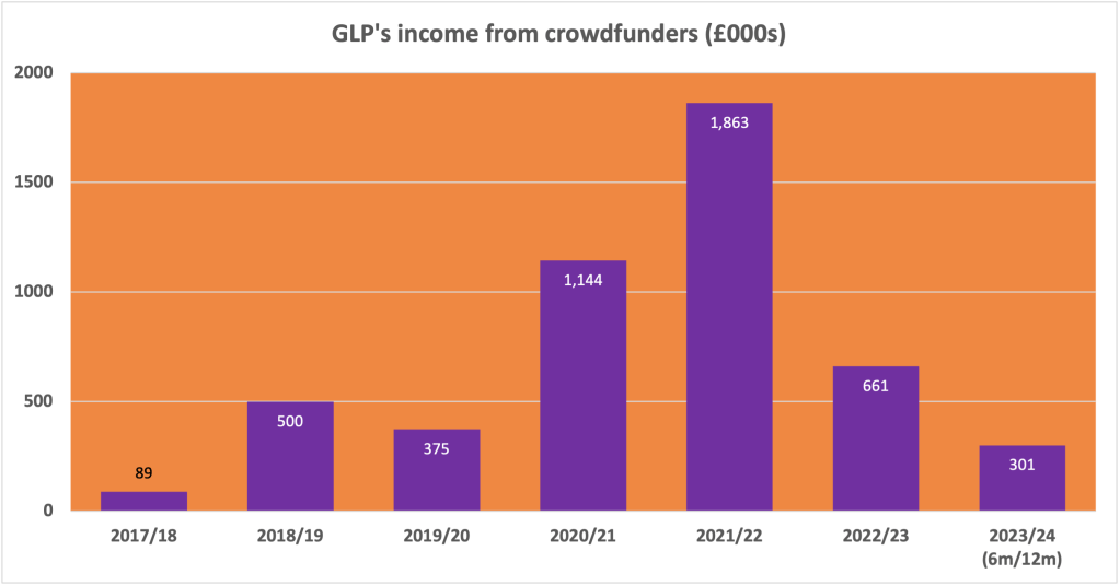 - GLP’s crowdfunded income in 2023/24 to date (6/12 months): £300,745