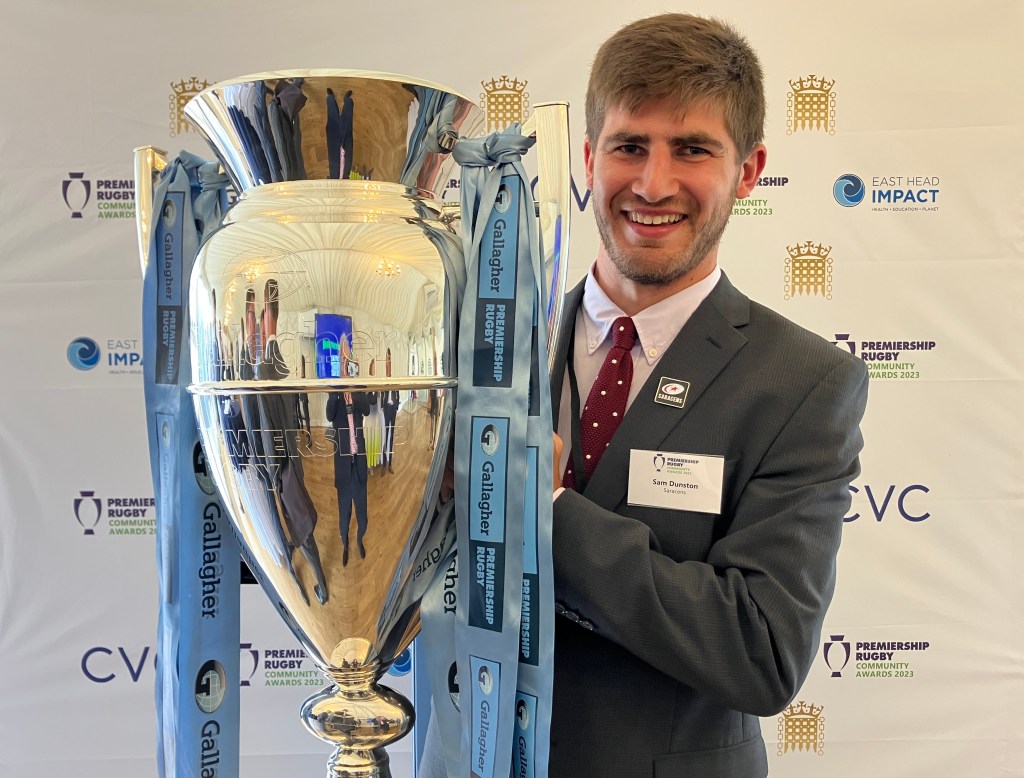 With the active support of Saracens stars such as Jackson Wray, Sean Maitland and Ella Wyrwas, Sam continued to blossom, and in early 2023 he became an assistant coach of the newly-launched Saracens Foundation junior rugby programme, working with disabled children aged 8-13.