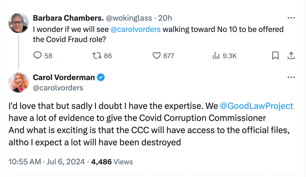 Update, 22 July: Yesterday, Jolyon Maugham kindly let the World know that he is going to spend the next two weeks walking in the mountains, without access to X/Twitter. And today, Rachel Reeves announced in the House of Commons that she is “beginning the process to appoint a Covid Corruption Commissioner”. Coincidence? Probably.