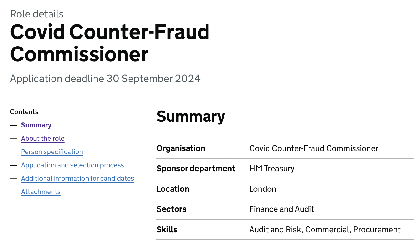 However, the manifesto pledged only a fixed-term Covid Corruption Commissioner, and – somewhat surprisingly – the accompanying, meticulously constructed fiscal plan, showing how Labour’s various policy pledges would be funded, did not include any forecast of how much money the Commissioner might actually claw back. On this blog, I concluded that Labour were rowing back fast from the meaty pledge made by Reeves in 2023.