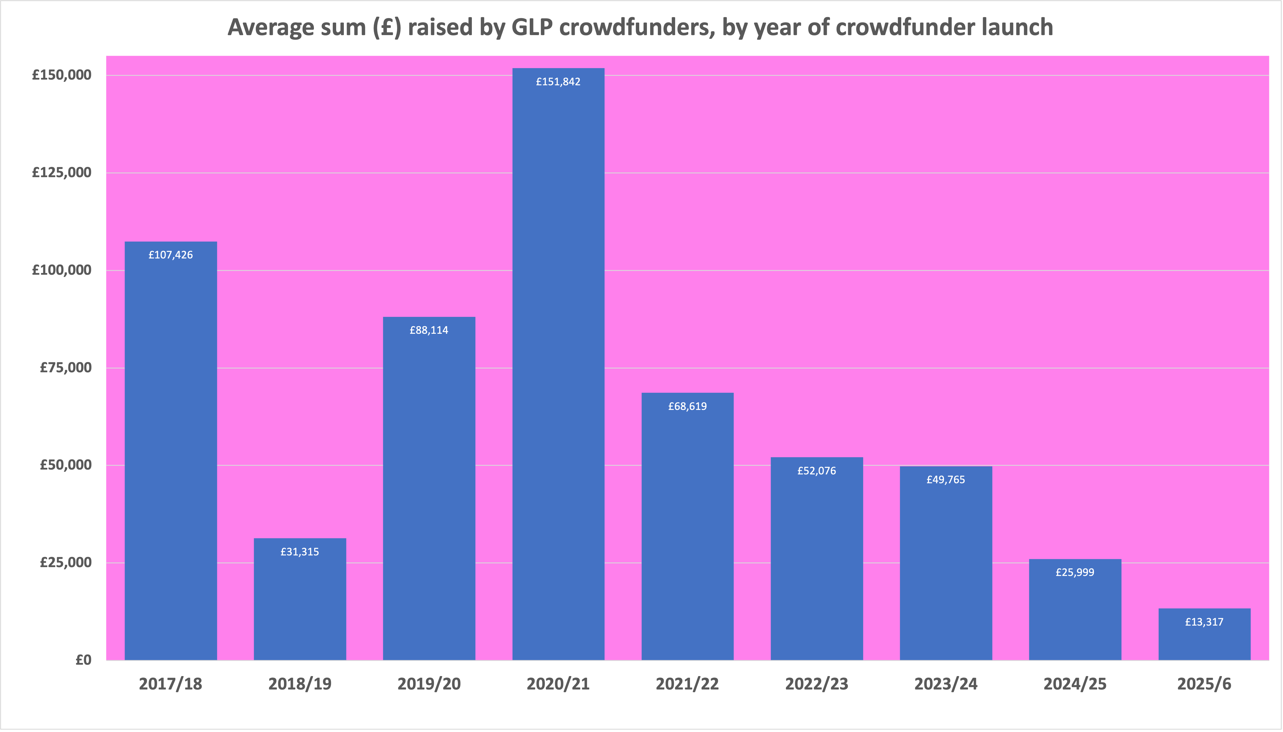 In noting this trend, it is only fair to acknowledge that, since 2019/20, crowdfunding has provided an ever diminishing proportion of the GLP’s total annual income, with most revenue coming from midwits daft enough to make a regular, direct donation. But Jolyon and the GLP’s heavy and persistent promotion of their crowdfunders on social media and in begging emails to supporters would suggest they regard such grifting as an important way of signalling their virility to existing and potential supporters, in order to keep those direct donations coming.