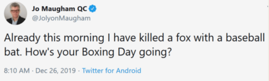 Were it not for the arrival of Covid19 a few weeks later, the story of the GLP might well have ended there – much like the life of the fox that Maugham battered with a baseball bat in his garden on Boxing Day 2019, before firing up Twitter to gloat about it. But, thanks to Boris Johnson, Dominic Cummings and Matt Hancock, between April 2020 and the lifting of Covid19 restrictions in February 2022 the GLP raised some £2.5 million from 18 crowdfunders in support of Covid19-related legal challenges.
